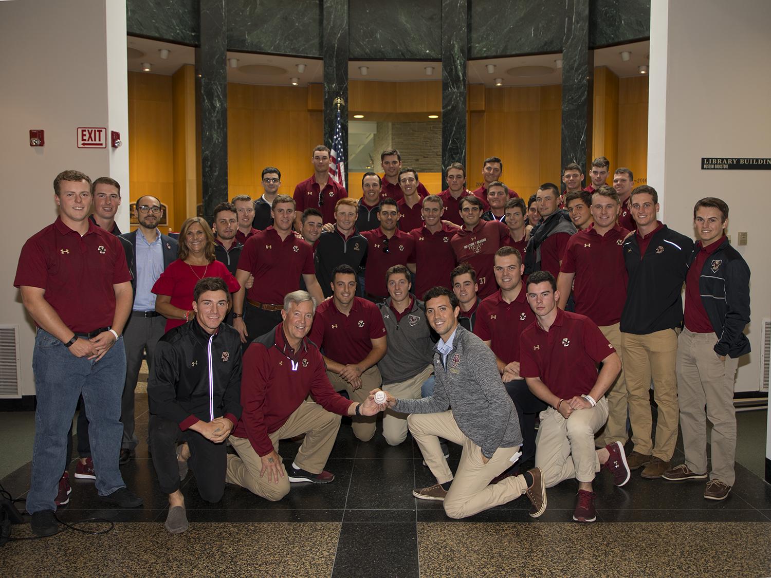 Five years after Pete’s journey began, he continues to fight ALS every day, refusing to cower in the face of a devastating disease which has taken away his ability to walk, talk, eat and even breathe. But while Pete – like Lou – was content with shying away from attention on the ballfield, he has spearheaded a public crusade within the medical community. And now, with today’s announcement of a new exhibit at the Hall of Fame, “ALS and Baseball,” the story of Pete, Lou and Catfish Hunter will continue to be told, to the hundreds of thousands of visitors the Hall of Fame receives every year. The announcement came as part of a weekend long celebration of Frates and his fight against ALS, during which the Boston College Men’s Baseball Team played two scrimmages in support of their former teammate.