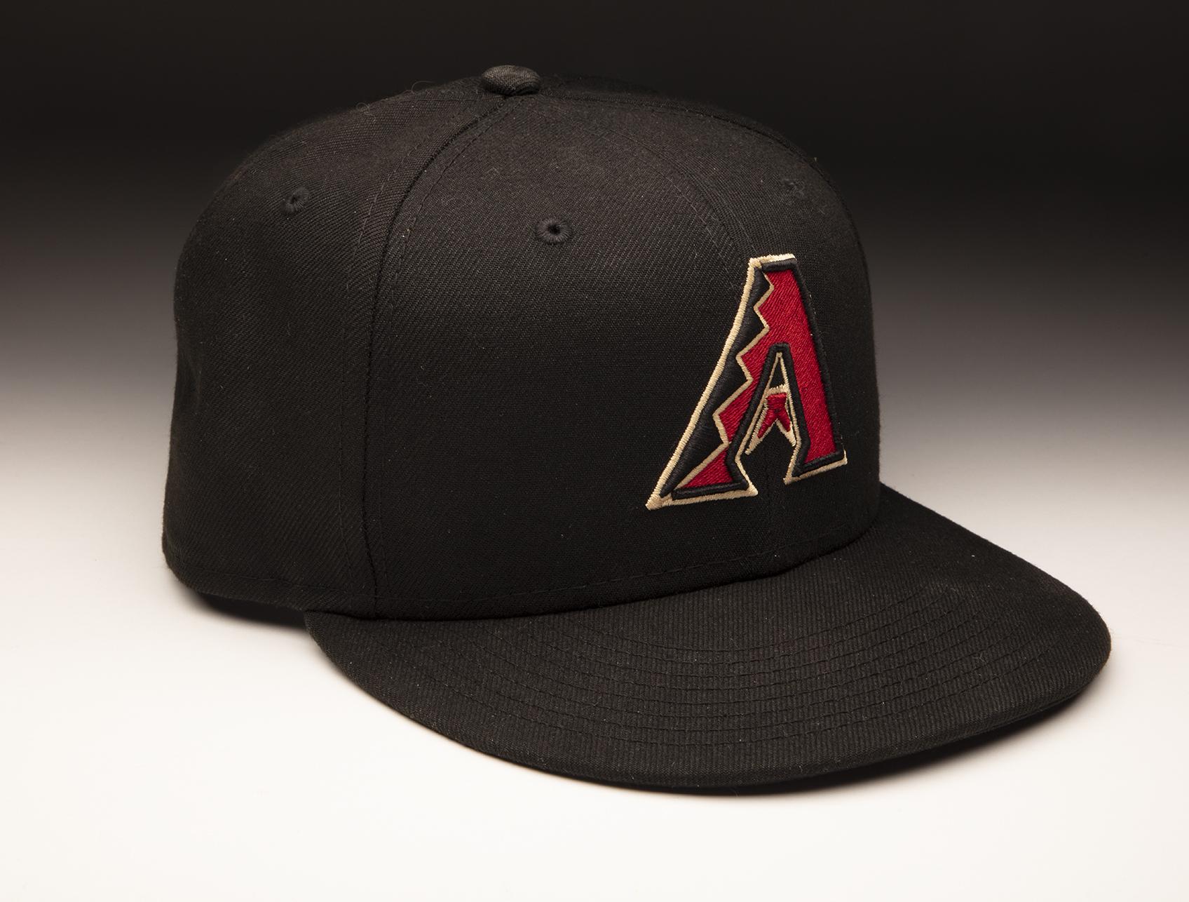 During the 2001 World Series, Arizona's Curt Schilling wore this cap which he inscribed to honor those who lost their lives on 9/11. With 26 strikeouts and a 1.69 ERA over three starts, Schilling earned Series co-MVP honors along with fellow Diamondbacks hurler Randy Johnson.