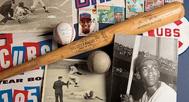 A native of Dallas, Texas, 19-year-old Ernie Banks debuted for the Kansas City Monarchs of the Negro Leagues in 1950. After two years in the Army, Banks returned to the Monarchs, who sold his contract to the Chicago Cubs in 1953. His debut on Sept. 17 marked the first appearance of an African-American player for the franchise.