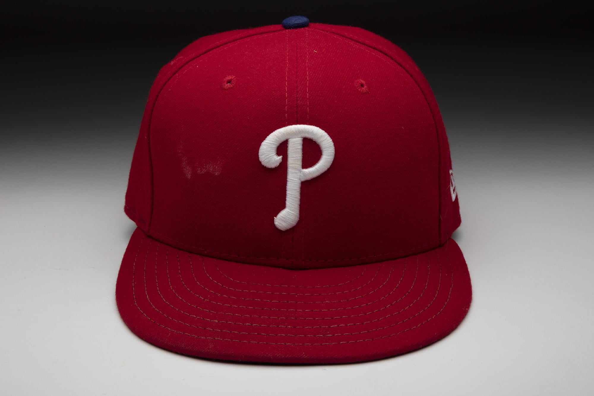 While wearing this cap, Phillies closer Brad Lidge recorded the final out of the 2008 World Series, topping off a perfect season in which he converted all 48 save opportunities, including seven in the postseason. Philadelphia’s Series victory marked the first by the club since their World Championship of 1980.