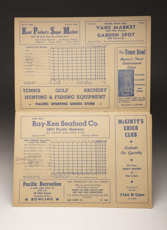 Thanks to a recent donation to the Baseball Hall of Fame Library, we now know that it was expected that Jackie Robinson would play shortstop and bat in the clean-up spot against Bob Feller and other major leaguers. The scorecard is for a game, played Oct. 24, 1945, at Lane Field in San Diego, between Brewer’s Royals and Kent Parker’s Major and Minor League All-Stars, headlined by Feller.