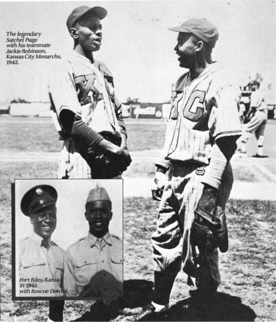 Kansas City Monarchs teammates Jackie Robinson and Satchel Paige were scheduled to play together on Oct. 24 1945, against Kent Parker’s Major and Minor League All-Stars. But when Robinson signed with the Dodgers the previous day, he became unavailable for that game. (National Baseball Hall of Fame and Museum)