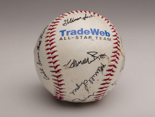 It was a promotional ball from a company named TradeWeb that had offices in the North Tower of the World Trade Center. The ball had facsimile signatures from companies – like Goldman Sachs – that did business with TradeWeb. It was scratched and cut, but miraculously came through the attacks in one piece.