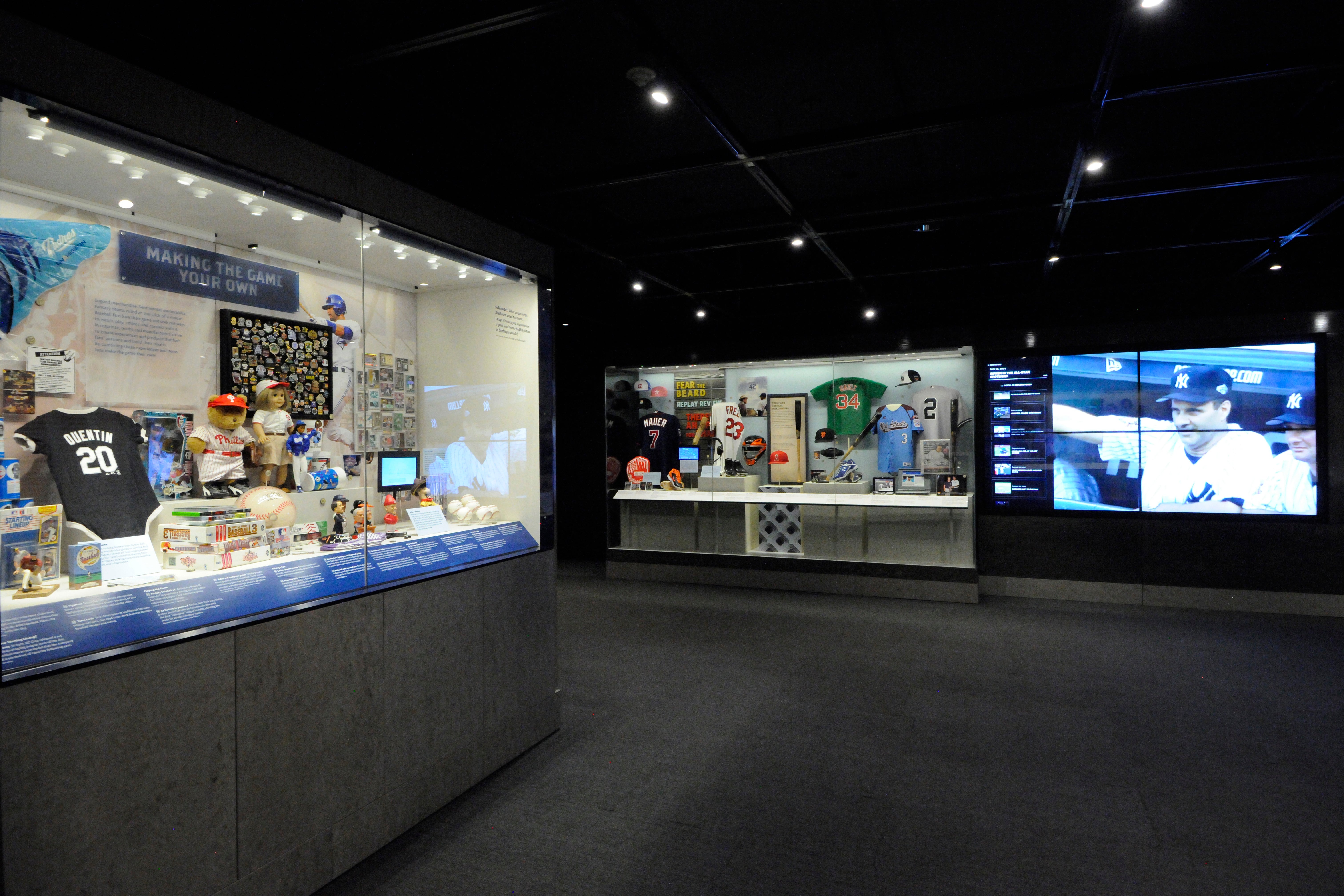 Today’s Game was situated at the end of the Museum’s second-floor timeline, its white mesh lockers – representing each of the 30 MLB teams – surrounding a center exhibit filled with caps, bats and jerseys from no-hitters, milestone moments and record-breaking games.